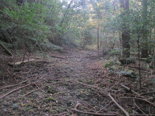 6・谷突き詰め/町境界(12:50)〜作業道〜支線突き当たり(12:08)〜谷越え〜