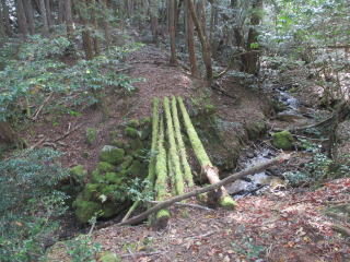 踏み跡(獣道?)在ったり無かったり、時には谷川歩いて進む。