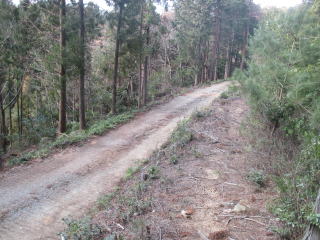 林道歩きで下山〜13・(14:22)〜14・林道分岐(14:30)〜15・集材所(14:41)〜