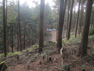 地図に無き林道現れて、無事三角点に着いたけど新林道に重機が入り間伐作業最中だった。